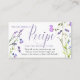 Tarjeta de solicitud de receta para ducha de novia con flores silvestres. Delicado y femenino diseño botánico con letra a mano con "receta" en elegante caligrafía de escritura. Tiene un borde de bonito de flores silvestres acuáticas en tonos lilas, lavanda, púrpura, rosa y azul. Una florida decoración moderna y señorial, con temática de jardín de cabañas de estilo bohemio y ondulado. Por favor, vea mi colección Purple Wildflower para ver elementos coincidentes o, envíeme un mensaje para crear las plantillas que necesita.