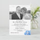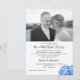 Anuncio de boda con foto y texto de invitación solo para la recepción con tema de playa / costero. El diseño del jardín junto al mar tiene una hidrangea azul y un diseño de estrella de mar en la esquina inferior. Las tarjetas blancas tienen una plantilla de foto en la parte superior. La muestra de texto presenta a los nuevos "Sr. y Sra." y comparte la información de la ceremonia privada de boda. Después de eso, se anuncia la recepción para los recién casados con fecha, hora y ubicación, con información de RSVP en la esquina inferior. El reverso es de un color gris azulado claro sólido. Las esquinas redondeadas son opcionales.