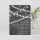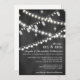 Un conjunto de pizarra de moda establece el telón de fondo para esta invitación después de la boda junto con hilos de luces blancas caprichosas y románticas y frascos de mason. Las luces blancas brillantes y estrelladas están de moda para las invitaciones de la fiesta después de la boda de esta temporada, y la tipografía moderna y limpia se combina con el diseño chic que hace que esta sea la invitación perfecta después de la boda. Personalice fácilmente esta invitación de boda moderna utilizando las plantillas dadas. Esta invitación es perfecta para lugares rústicos, de jardín, granero o al aire libre. Las novias que hacen manualidades amarán esta opción consciente del presupuesto sin sacrificar el estilo o la calidad. ¡No olvide las tarjetas de respuesta de RSVP coordinadas, notas de agradecimiento y franqueo!