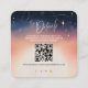 Asegúrese de que sus huéspedes tienen toda la información esencial con esta tarjeta de detalles del Boda Sunset to Moonrise con código QR. Diseñado para complementar su temática boda celeste, cuenta con una impresionante mezcla de melocotón azul profundo, negro y rosa suave, que refleja la transición del amanecer al atardecer. Agregue la dirección URL del sitio web del boda rellenándola en la ficha de detalles. El código QR se generará automáticamente y los invitados tendrán una forma perfecta de acceder a todos los detalles del evento. Al revés, exhibe una hermosa foto de una pareja para añadirla a una estética moderna.