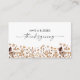 La tarjeta de agradecimiento Fall Leaves Thanksgiving Enclosure Card captura la belleza cálida y romántica del otoño, con suaves hojas de otoño combinadas con piñas rústicas. El diseño evoca una atmósfera natural y acogedora, a la vez que elegante y refinada, lo que la hace perfecta para recepciones de boda de estilo rústico o vintage. Los tonos cálidos y terrosos de las hojas de otoño combinados con detalles de piñas crean un ambiente acogedor y elegante, añadiendo un toque significativo y memorable a la celebración de la boda.