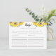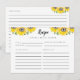 Tarjeta de receta personalizada con el tema del girasol de la ducha de novia.