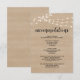 Tarjeta de alojamiento de boda con luces de cuerda de granja rústica
