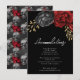 Tarjetas de alojamiento de boda con flores de esqueleto negras y rojas góticas. Hojas de pan de oro falsas. La fuente script destaca con una fuente de nombre serif fácil de leer. Fácil de ajustar para las necesidades de su propia boda. Tarjetas de enclosure personalizadas para boda.