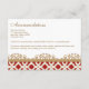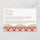 Elegante, elegante y hermosa dirección boda de inspiración francesa y tarjetas de alojamiento con un rico y repitiente diseño de patrones geométricos de escarlata y rubí y florecimiento floral de tonos dorados. Esta tarjeta de direcciones y alojamiento de lujo es perfecta para un boda de temática marroquí, árabe o aladino, fiesta de aniversario o cualquier evento especial. En la parte posterior de estas personalizados, se pueden personalizar las elegantes tarjetas de marco con los nombres de la novia y el novio en el diseño impreso de la cinta. Pintura y diseño © Chrissy H. Studios, LLC. Todos Los Derechos Reservados.