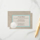 Una elegante tarjeta de alojamiento de temática playera. Presenta sutiles texturas de burlap y tonos turquesa inspirados en el océano. Coordina con invitaciones coincidentes, tarjetas de agradecimiento, programas, franqueo y más.