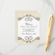 Esta tarjeta de regalo de bienvenida de boda cuenta con un fondo a rayas doradas claras con remolinos de hierro forjado vintage negro sólido en la parte superior e inferior. El diseño le da a la tarjeta un aspecto muy elegante. El texto personalizable le permite agregar su propio mensaje a sus invitados de boda fuera de la ciudad.
