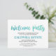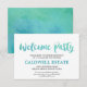 Esta tarjeta de inserción de bienvenida de caligrafía acuarela es perfecta para una boda con tema de playa tropical. El diseño divertido y enérgico presenta una hermosa fuente de escritura de acuarela con gradiente de verde azulado y azul agua. ¡Personalice esta tarjeta de detalle con la información de su recepción e incluya también la dirección de su sitio web de boda!
