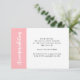 Recepción Tarjeta de Boda de alojamiento rosa Rubor