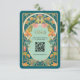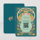 Recepción Tarjeta de Boda de código QR de Art Nouveau verde