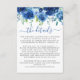 Recepción Tarjeta de Boda floral azul de la Marina