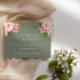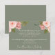 Comparte detalles importantes del boda con estilo con esta elegante tarjeta de gabinete. Diseñado con un suave fondo verde sabio y románticos florales rosas, es el complemento perfecto para su suite boda. Personalice su sitio web, alojamiento y detalles de RSVP para mantener a sus huéspedes informados y a su disposición.