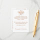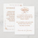 El diseño frontal muestra la imagen de un hincha victoriano en el centro superior rodeado por el encabezado anterior, "Los detalles" como un arco sobre la imagen. El texto del personalizable que muestra la información de la recepción que se muestra a continuación es de un bonito color rosa-dorado sobre un fondo de marfil. El Design back ofrece información sobre el alojamiento/alojamiento para huéspedes fuera de la ciudad. En las esquinas se ve una delicada frontera con cinta adhesiva. Diseñado para coordinar con la "Suite Boda de fans católicos tradicionales".