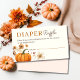 ¿Buscas hermosas tarjetas de envoltura de pañales para la ducha de bebé? Compruebe esta tarjeta de envoltorio de pañales de calabaza de otoño. Cuenta con una calabaza acuática y hermosas flores silvestres secas. Puede agregar sus propios detalles muy fácilmente utilizando los campos de plantilla. Tenemos toda una colección de artículos a juego y suministros de fiesta con este maravilloso tema de calabaza con diferentes opciones para invitaciones. Puede verlos haciendo clic en el botón de colección. ¡Que tengas un Baby Shower maravilloso!
