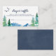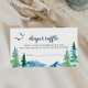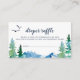 Esta tarjeta de envoltura de canapé de pañales para bebé de montaña rocosa es perfecta para una ducha exterior para bebés. El diseño presenta un paisaje natural pintado de azul y verde con pinos acuarelas, pájaros y montañas. Envíe estas tarjetas con las invitaciones de su ducha de bebé para pedirle a los invitados que ayuden a hacer reservas a los futuros padres con pañales — ¡por su oportunidad de ganar un premio! Qué manera tan amable y divertida de asegurar que los padres tengan lo esencial.