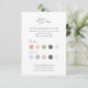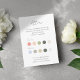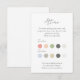 Este verano moderno marca el código de vestimenta de la tarjeta de inserción, presenta 10 opciones de color editables para él y ella, contra un fondo blanco y la opción de incluir una dirección web boda. Un conjunto de fuentes contemporáneas vienen en un verde boscoso oscuro rico.