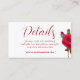 Detalles del boda / sitio web adjunto tarjetas pequeñas para dirigir a los invitados a un sitio web del boda para más información. Estilo de letra impreso flaco en rojo sobre blanco. Revertir es rojo sólido. Cambiar el tamaño de esta tarjeta puede desplazar la redacción para asegurarse de que encaja correctamente.