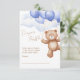 Tarjeta de clausura de pañal Raffle para una ducha de bebé decorada con un adorable oso oso de peluche montando globos en las nubes.