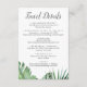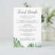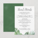 Esta salvaje tarjeta de alojamiento con detalles de viaje de palmeras tropicales es perfecta para una boda en la playa o destino. El diseño presenta una exótica variedad de hojas de plátano de palmera de color agua verde, helechos, follaje, plantas botánicas y vegetación para un ambiente tropical de verano.