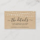 Tarjeta de cierre de sitio web de detalles de Boda rústico - luces románticas de hadas en un fondo kraft para comunicar los detalles de su RSVP y boda.