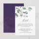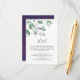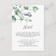 Esta rústica tarjeta del recinto del hotel de lavanda y eucalipto es perfecta para una boda sencilla y elegante. El diseño floral incluye hojas de eucaliptos acuáticas y vegetación con brotes de flores silvestres moradas.