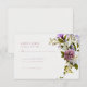 Tarjetas de confirmación de asistencia de boda Bloom con flores moradas rosadas.