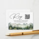 Una elegante tarjeta de confirmación de boda con montañas y pinos de acuarela que puedes personalizar con tu texto.