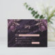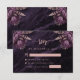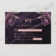 Esta elegante tarjeta de confirmación de boda presenta ramos florales morados resaltados con follaje de lámina de oro rosa en dos esquinas, sobre una imagen de fondo de ágata de acuarela morada. El texto personalizable combina fuentes serif y de escritura a mano. El reverso presenta un diseño floral y de ágata morado y oro rosa a juego.