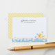 Esta bonita tarjeta de consejo para la ducha de bebé para mamá tiene un fondo azul pálido con un pato de goma amarillo que flota en el agua con burbujas. En el reverso aparece una franja de diagnóstico blanca sobre un fondo amarillo. Personalízalo para tus necesidades. Puedes encontrar productos coincidentes en mi tienda.