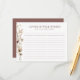 Traiga un estallido de belleza floral y encanto rústico a su despedida de soltera con estas elegantes tarjetas de consejos para la despedida de soltera de flores silvestres en acuarela. Con un encantador motivo de flores silvestres en acuarela, estas tarjetas permiten a los invitados de la despedida de soltera escribir consejos de matrimonio reflexivos, predicciones y consejos apreciados para la futura novia. El diseño floral aporta un toque de elegancia y belleza natural a esta emotiva actividad de la despedida de soltera. Dé a sus invitados un lugar para escribir sus palabras de sabiduría, buenos deseos y pronósticos ingeniosos para el futuro.