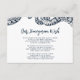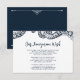 Envíe a sus invitados sus deseos añadiendo esta tarjeta de pulpo de Descanso de luna de miel junto con su invitación a la boda. El diseño incluye tentáculos de pulpo azul marino que envuelven alrededor de la tarjeta. En la parte trasera hay un elegante diseño de cuadros blancos. Compra los artículos del boda coordinador para que coincidan (se venden por separado). Se pueden encontrar artículos coincidentes en nuestra colección 'Otopus náutico de la Marina'.