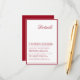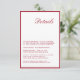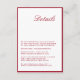 La moderna tarjeta de detalles de caligrafía roja de Boda es un complemento de moda a su suite de papel boda. Con una caligrafía elegante y fluida y un diseño rojo vibrante, esta tarjeta de detalles ofrece a sus huéspedes información esencial en un formato elegante. Perfecto para compartir detalles como direcciones, alojamiento de hotel, cronología de bodas y código de vestimenta, esta tarjeta garantiza que sus huéspedes estén bien preparados para su día especial. Su sofisticado diseño combina con gusto con un boda de temática roja, añadiendo un toque de clase y claridad. Imprimidas con cartón de alta calidad, nuestras tarjetas de detalle ofrecen un lujoso aspecto que impresionará a sus huéspedes. Ya sea que esté planeando una reunión íntima o una gran celebración, esta tarjeta hará una impresión duradera y asegurará que sus invitados tengan toda la información que necesitan para disfrutar al máximo de su día de boda. Haga una declaración con su papelería boda y mejore la sofisticación de sus detalles bodas con nuestra moderna tarjeta de detalle de Boda de guiones Minimalistas. Es la elección perfecta para las parejas que aprecian un diseño limpio y contemporáneo y quieren que su papelería refleje su refinado gusto