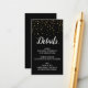 Esta tarjeta de inserción de detalles de la fiesta de aniversario con confeti dorado sobre fondo negro es perfecta para una elegante fiesta de aniversario de boda. El diseño elegante presenta confeti dorado falso sobre un fondo negro con caligrafía blanca simple. Coordina perfectamente con la Invitación para la fiesta de aniversario con confeti dorado sobre fondo negro.