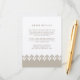 Diseñada para coordinar con nuestra colección de invitaciones a bodas de inspiración árabe, esta elegante y lujosa tarjeta de alojamiento de información para invitados cuenta con una refinada paleta de colores de champán brillante y beige de lino. Reemplace el texto de ejemplo con los detalles clave de la celebración de su boda. Recomendamos imprimir este estilo en el papel Luxe Champagne Shimmer para un acabado metálico luminoso. ¿Se pregunta qué información incluir en un anuncio de invitación a la boda? Considere detalles como alojamiento en hotel, códigos de grupo, transporte, direcciones, información de recepción de bienvenida y url de su sitio web boda. Incluso puede cargar un mapa al reverso usando la función personalizar it. ¿Necesita ayuda con la redacción o el formato? ¡Me encantaría ayudar! Comuníquese con Kristen a través del enlace "preguntar a este diseñador".
