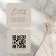 Agrega un toque moderno a la papelería de tu boda con esta tarjeta minimalista de detalles beige. Con tipografía elegante en un lado y un código QR escaneable en el reverso, es la forma perfecta de compartir el sitio web de tu boda, enlace de confirmación de asistencia, alojamiento o indicaciones de viaje. El fondo beige neutro y el diseño limpio lo convierten en una opción versátil que combina perfectamente con cualquier suite de invitaciones de boda, especialmente para parejas que aman un look simple pero elegante.