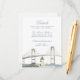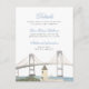 Tarjeta de inclusión de invitación de boda clásica costera con gráfico de acuarela pintado a mano personalizado del puente de Newport Rhode Island. Personalice esta invitación agregando información sobre su boda, incluyendo la ubicación de la recepción, alojamiento y sitio web.