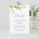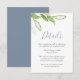 Esta tarjeta de detalles de boda está diseñada utilizando un ramo de follaje verde en acuarela. El diseño minimalista presenta tipografía de letra cursiva de moda. Utilice los campos del plantilla para personalizar con su información. Una elección botánica para bodas boho chic. Para ver la línea completa visite www.zazzle.com/dotellabelle