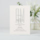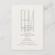 Tarjeta de detalles de boda elegante y minimalista con un diseño de monograma arquitectónico moderno.
