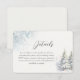 Comparte información importante sobre bodas con estilo con esta elegante tarjeta de detalles del bosque invernal. Diseñado con pinos acuarelas, nevadas suaves y acentos azules helados, es la forma perfecta de incluir alojamiento, direcciones o la página web de su boda. Un toque encantador para los bodas rústicos, nevados o de montaña.