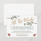 Tarjeta de detalles de boda con vegetación divertida y festiva para tu boda de invierno