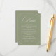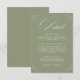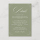 Mejora tu suite de boda con nuestra Tarjeta de Detalles Verde Oliva 'Elegancia Atemporal'. Con un fondo sereno verde oliva y tipografía refinada, esta tarjeta transmite bellamente información esencial como alojamiento, horario y más. Perfecta para una estética de boda moderna y natural.