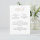 Esta tarjeta de detalles de boda con caligrafía dorada es ideal para una boda impresionante. El diseño simple muestra una tarjeta minimalista adornada con una tipografía encantadora y caprichosa de color dorado. ¡Compile fácilmente la lista de invitados de su boda y las solicitudes de canciones para la pista de baile simultáneamente! Esta tarjeta de información pregunta de manera eficiente si los invitados asistirán a su boda y qué canción los hará bailar.