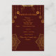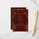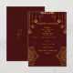 Comparte información esencial del día de la boda con elegancia utilizando esta tarjeta de detalles en vino y dorado. Diseñada con un fondo rico en vino y acentos ornamentales dorados lujosos, esta tarjeta de inclusión complementa perfectamente temas de boda tradicionales o clásicos. Ideal para listar detalles de la ceremonia, información de la recepción, código de vestimenta y direcciones. Totalmente personalizable para coincidir con su suite de papelería coordinada.