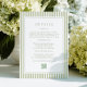 Elegantemente moderna y atemporal, esta tarjeta de detalles de boda a rayas establece el tono perfecto para su día especial. Con suaves rayas verticales pastel y una refinada mezcla de tipografía clásica serif y de escritura fluida, este diseño combina simplicidad y sofisticación, creando una estética limpia y elegante ideal para bodas contemporáneas, románticas o de temática de jardín.