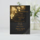 Comparta información importante del día de la boda con estilo con esta elegante tarjeta de detalles florales en negro y dorado. Diseñada con un fondo oscuro lujoso y delicadas flores botánicas doradas, esta tarjeta complementa perfectamente suites de boda formales y modernas. Ideal para listar detalles de la ceremonia, información de la recepción, código de vestimenta y direcciones. Totalmente personalizable para un conjunto de papelería sin fisuras.