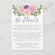 Estilo Boho floral rosa y morado con guión elegante en esta tarjeta de detalles de invitación de boda con un toque de morado en los tipos de letra. Relájese con esta hermosa invitación a su día especial.