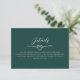 Recepción Tarjeta de detalles de Boda verde de esmeralda