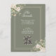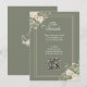 Proporcione a sus invitados toda la información que necesitan utilizando esta tarjeta de detalles de boda bellamente diseñada. Con suaves flores neutras, un fondo verde menta romántico y un doble borde dorado, esta tarjeta incluye espacio para el sitio web de la boda y un código QR escaneable para acceder rápidamente a direcciones, información de la recepción, alojamiento y más. Una combinación perfecta para suites de boda clásicas o con temática de jardín.