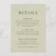 Recepción Tarjeta de Detalles de Boda Verde Oliva