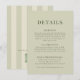 Elegantemente moderna y atemporal, esta tarjeta de detalles de boda a rayas establece el tono perfecto para tu día especial. Con delicadas rayas verticales pastel y una refinada mezcla de tipografía clásica serif y script fluida, este diseño combina simplicidad y sofisticación, creando una estética limpia y elegante ideal para bodas contemporáneas, románticas o con temática de jardín.